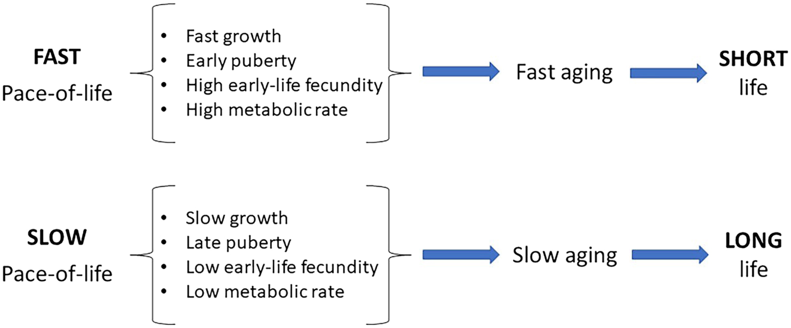 Differences in the pace-of-life are associated with differences in the rate of aging and longevity.